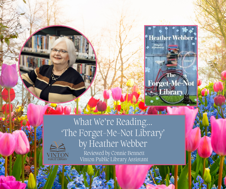 Juliet is trying to gain peace following the death of her beloved grandfather with whom she had planned to take this trip; now she is on a quest to regain her memory, which was lost in the same incident that claimed grandpa's life. There are several stories intertwined in this book, and I thoroughly enjoyed it. It is available in large type at the Vinton Public Library, and on the Libby app. Relax and read!