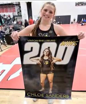 Chloe Sanders has made history as the first Iowa high school girls wrestler to reach 200 career wins, achieving the milestone during her senior season at Vinton-Shellsburg.