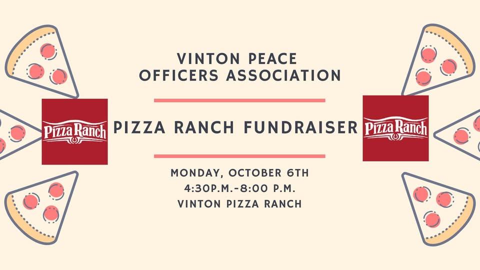 Join us at Pizza Ranch on Monday, October 6, 2025, The event will be from 4:30-8:00 p.m. for a fun night supporting the Vinton Peace Officers Association! Officers will be helping clear tables, and maybe even refill your pop (don’t worry, we’ve been practicing).