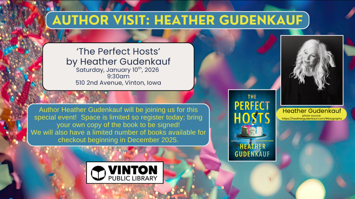 Author Heather Gudenkauf will speak at the Vinton Public Library January 10
