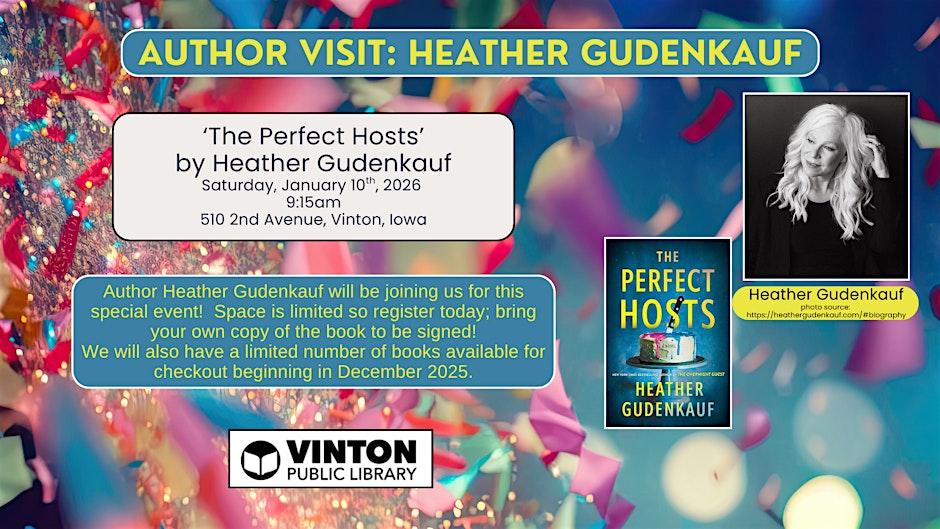Welcome to the Author Visit and Book Signing with Heather Gudenkauf at the Vinton Iowa Public Library! Join us for an exciting opportunity to meet author Heather Gudenkauf in person. Get your books signed and have a chat with the author about her work. Don't miss out on this fantastic event - space is limited so register today!
