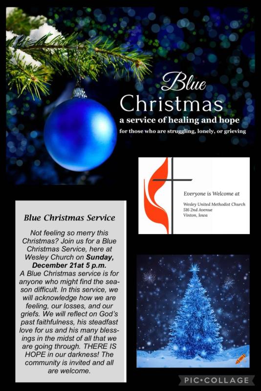 Sunday, December 21st- Blue Christmas Service 5 pm