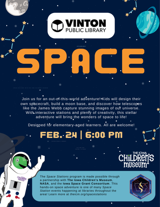 Where? Vinton Iowa Public Library, 510 2nd Avenue, Vinton