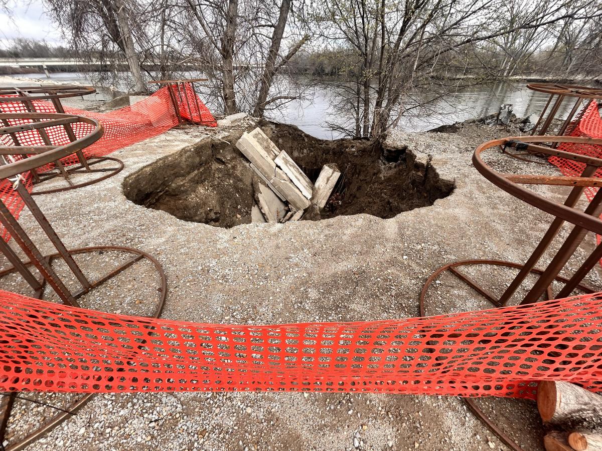 Scott Meyer notified the mayor on Wednesday that a storm sewer came apart east of the power plant and will be repaired. Maynard is guessing that it will require about 32 feet of repairs so that it doesn't settle causing more issues. (If you see it, stay back from it! That's what a zoom lens is for.)