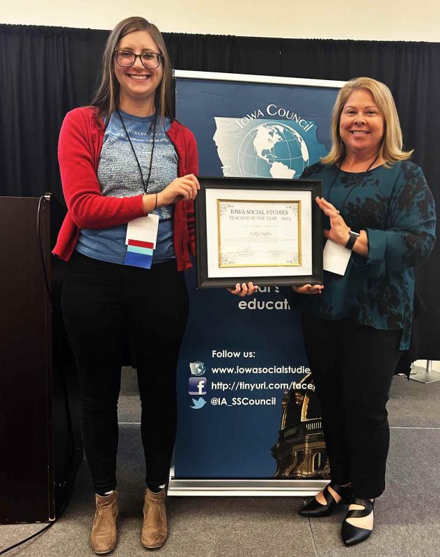 I’m excited to share some great news. Vinton-Shellsburg High School teacher Kelly Steffen has been selected as the Iowa Council for the Social Studies Teacher of the Year!