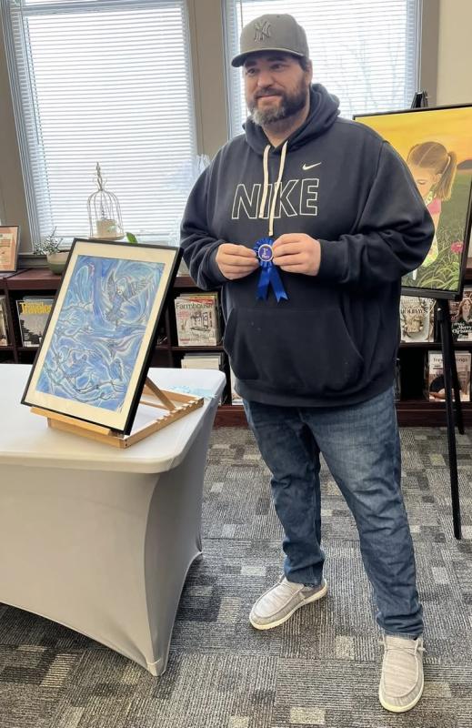The Big Read Community Art Contest concluded on Saturday, with a reception at the Vinton Public Library to announce the winners and congratulate everyone who participated. VGFA received 41 submissions of original artwork related to the themes in the book, Bewilderment, by Richard Powers, the focus of the Vinton Public Library's Big Read program this year. Cash prizes of up to $200 and gift baskets were awarded to the 1st, 2nd, and 3rd place contest winners, as well as the winner of a “Popular Vote”, selected by over 150 community members who stopped by to vote on their favorite piece.