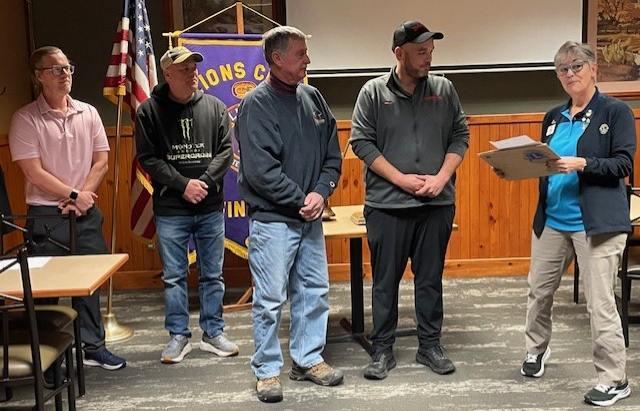 Pictured left to right are: President Dan McCann, Sponsor Bret Nelson, New Members Gary Marlow and Louie Naniot and Lions Club Foundation Director Chris Waring, who performed the Installation ceremony.