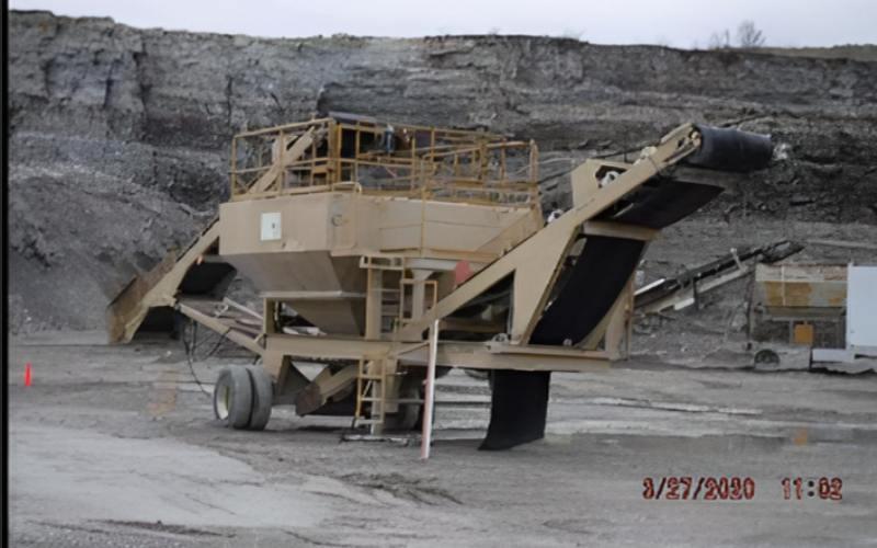 "Because Wendling’s mining operations comprise numerous locations, much of its equipment is portable; lime surge hoppers are no exception. To move a hopper from one site to another, workers disassemble the bin, transport it to the new site, and then reassemble it, ensuring that all of the safety features are in place and operational. Lime surge hoppers collect processed lime, holding it until dump trucks carry it away. But, because the lime particulate is so fine, it periodically accumulates around the rim of the hopper, preventing consistent flow onto the conveyor belt. To alleviate this problem, many hoppers are equipped with a vibratory motor that sends tremors through the bin, causing impacted lime to break free and flow onto the conveyor belt. Without such a mechanism, someone must periodically scrape the sides of the hopper, pushing the accreted lime into the funnel and onto the conveyor belt."