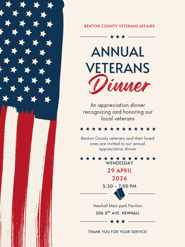 Benton County Affairs will be hosting the Annual Veterans Dinner on Wednesday, April 29, from 5:30 - 7:00 p.m. at the Newhall Main Park Pavilion. The pavilion is located at 206 3rd Ave., in Newhall.&n... AMERICAN LEGION POST 57 TENDERLOIN DINNER Monday, March 16 Dinner 4:30- 6:30 pm