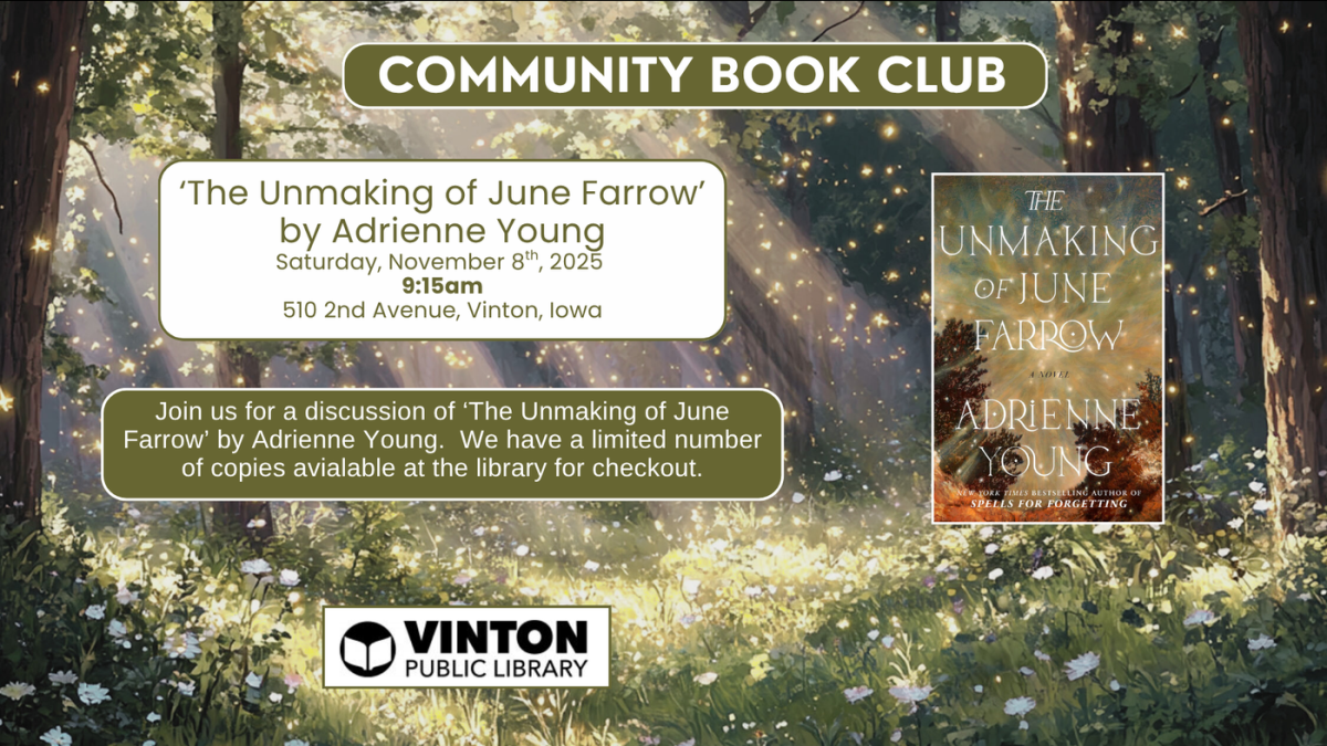 Join us Saturday, Nov 8, 2025, 09:15 AM at the Vinton Iowa Public Library, 510 2nd Ave, Vinton