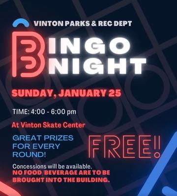 Join Vinton Parks and Rec at the Vinton Skate Center from 4-6:00 p.m.There will be great prizes for every round!