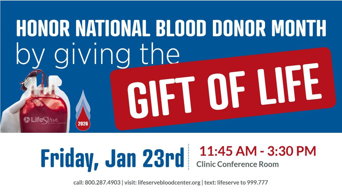 Join us this month in donating blood at the January 23, 2026 blood drive! From 11:45 a.m. until 3:30 p.m. a clinic will be set up at Virginia Gay Hospital in the Conference Room. Text LIFESERVE to ... VGH Dietitian, Sara Wattnem, Earns Specialized Eating Disorder Certification