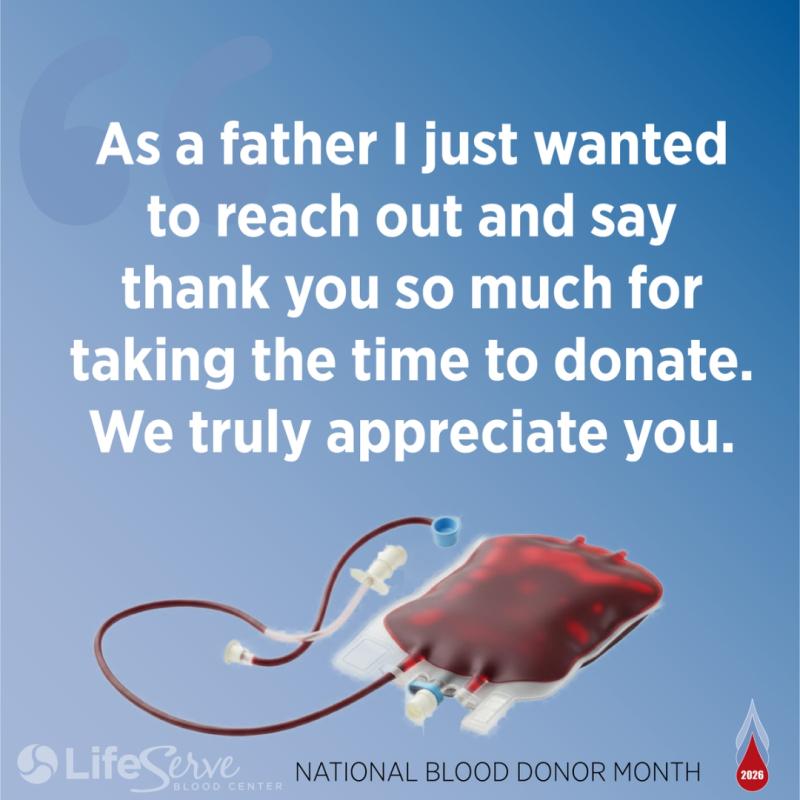 Text LIFESERVE to 999-777, call 800-287-4903 or visit www.lifeservebloodcenter.org