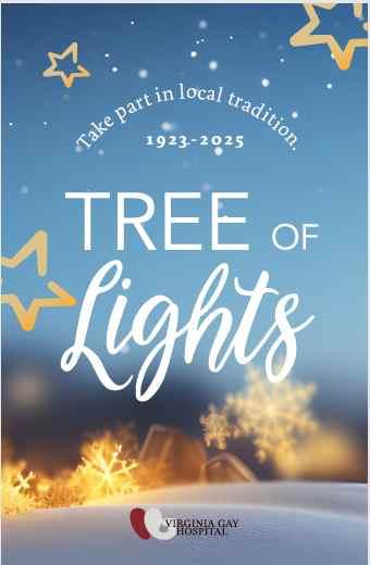 Take part in local tradition. The Tree of Lights is our major annual fundraising campaign and has been for over 30 years. Funds raised from the Tree of Lights support the healthcare needs of the people who utilize the services of Virginia Gay Hospital and our clinics in Atkins, Van Horne, Vinton, and Urbana. People have the opportunity to purchase various lights or ornaments in memory of or in honor of anyone of their choosing. myvgh.org/vgh-foundation/tree-of-lights