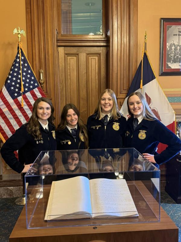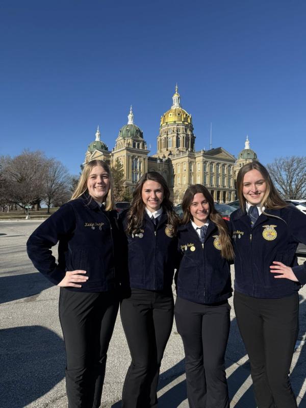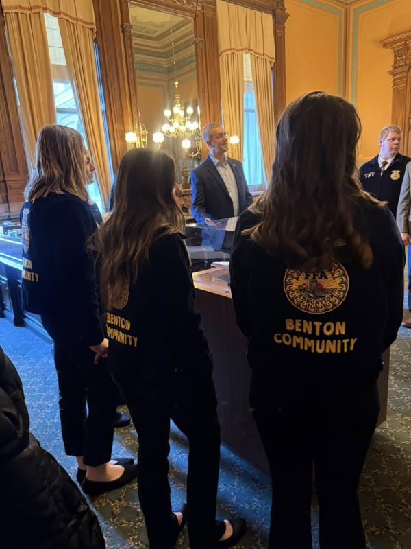 Benton Community FFA members attended the 41st FFA Legislative Symposium at the Iowa State Capitol. Members visited the Secretary of State’s Office, learned about Iowa’s Constitution, and took in the beauty of our state capitol building while learning how bills are introduced and move through the legislative process.