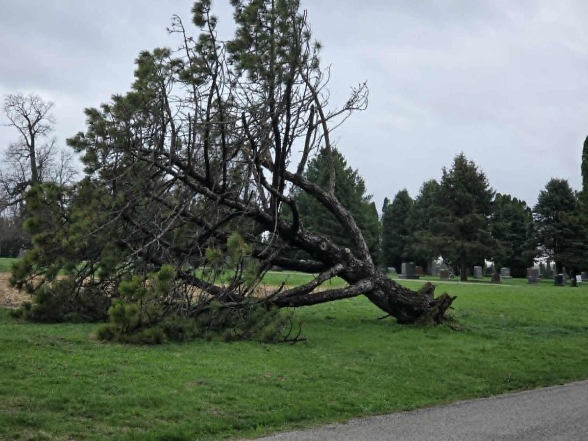 With all of the rain that we've had, it appears that this tree, next door to the Evergreen Cemetery, has some very wet feet and just couldn't stand in the soggy ground any longer, it lost its footing and toppled over. City crews were right on top of it and cleaned it up on Tuesday morning.