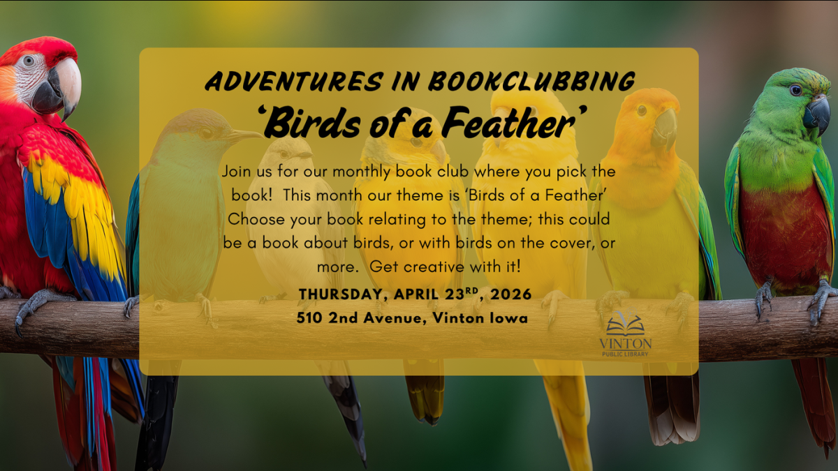 Join us at the Vinton Public Library for one of our Silent Book Clubs!There will be two groups meeting on Tuesday, April 14 at 6:00 p.m.The adults and teens will have a chance to grab a book and enjoy...
