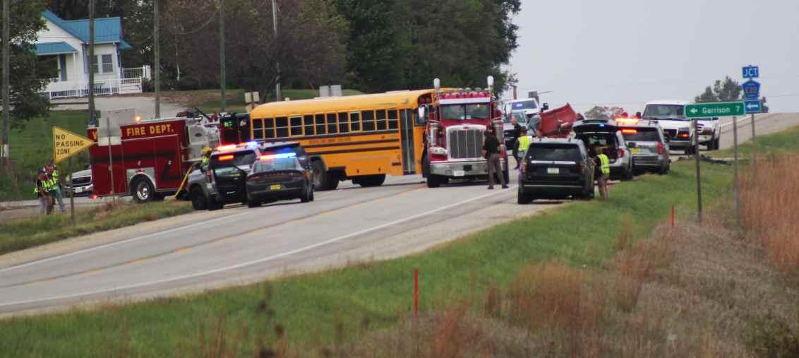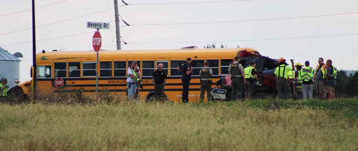 On Friday, a Vinton-Shellsburg school bus with six students on board, was leaving town on Highway 218 headed south. It was involved in a multi-vehicle accident.