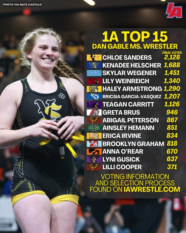 Go Vote for her to be the winner in the - Class 1A Dan Gable Ms. Wrestler of the Year!