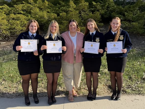 Outside of LDEs, the CPU FFA chapter expanded its range of participation, with members taking part in the Poultry Judging CDE. Bayla Walters, Emmalee Kratz, and Ashtyn Shonka received a bronze rating for their involvement. We also had four members partake in the State FFA Chorus. Members Brynne Hite, Hannah Walvatne, Kinze Manson, and Kolten McLaughlin showcased their musical talents and excitement to be involved in the FFA. For the first time ever, CPU FFA members walked across the stage to receive their Iowa degrees, the highest degree that can be bestowed by the state of Iowa. It was a monumental moment and we are so proud of these individuals who put so much time and effort into making this happen. Congratulations Bella Edler, Hannah Walvatne, Emersyn Matthiesen, and Emmalee Kratz!