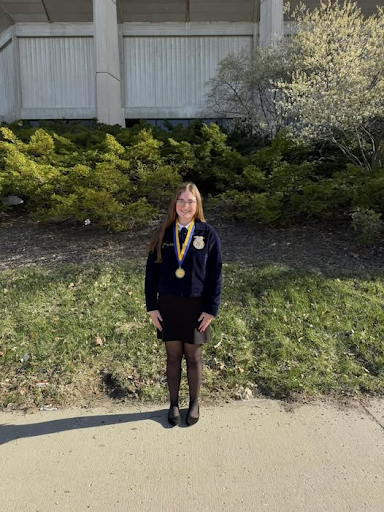 To begin, three events competed in LDEs and achieved high levels of success. The Conduct of Meeting team, consisting of Kolten McLaughlin, Brynne Hite, Tabitha Letts, Sophia Blackwell, Audrey Seiler, Emily Cue, and Kyla Russler, received a silver rating. The Chapter Program team, consisting of Bella Edler, Kinze Manson, and Hannah Walvatne, received a gold rating for the presentation. Audrey Seiler also took the chapter knowledge test and received a gold rating and secured a 1st place finish! Finally, Caleigh Lewis competed in Prepared Public Speaking and received a gold rating and a 1st place finish. She will advance and compete at the National Convention this October. Congratulations, Caleigh and all of these individuals! Their hard work and dedication have really paid off!