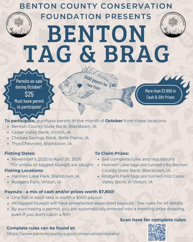 Get your permit before it's too late! LAST CALL to get your permits before Benton Tag & Brag kicks off!Fishing season runs Nov 1 – Apr 30 at Hannen Lake & Rodgers Park.Catch a tagged bluegi... Pirate Escape Room at the Vinton Public Library - October 20