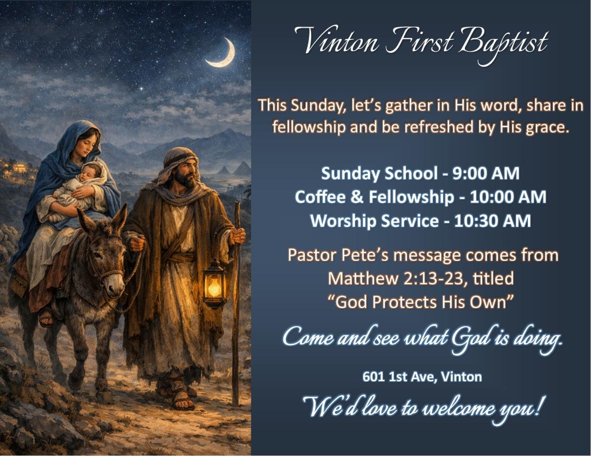 Vinton First Baptist Church Welcomes you to join us this Sunday!