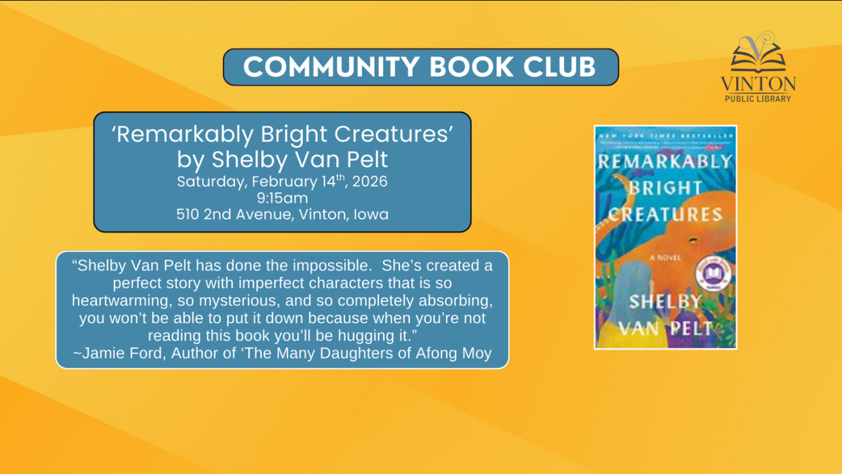 Iowa Learning Farms virtual field day is scheduled for Feb. 26 at 1 p.m. CSTIowa Learning Farms will host a virtual field day on Thursday, Feb. 26, at 1 p.m. CST. The event, which is available at... Community Book Club discussion of 'Remarkably Bright Creatures' February 14
