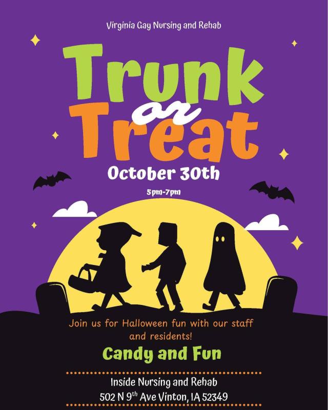 Join us for Trunk or Treat on Thursday, October 30, 2025 from 5-7:00 p.m.