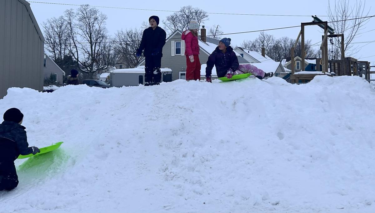 The parking lot at Harvest 365 Church looked like a giant had scooped out a bite of the earth and left a perfect little mountain behind. The guy responsible for plowing the parking lot pushed the snow into one almost-mountain-sized pile in one corner, and turned it into the best sledding hill anyone under five-feet-tall had ever seen.