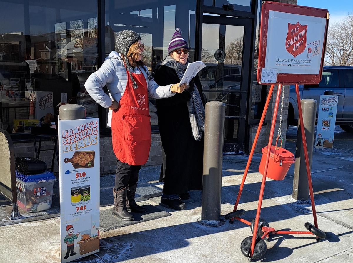 Two retired teachers from Center Point - Urbana, gave it their all while ringing the bell for the Salvation Army of Benton County. The two teachers entertained shoppers by singing carols accapella in...